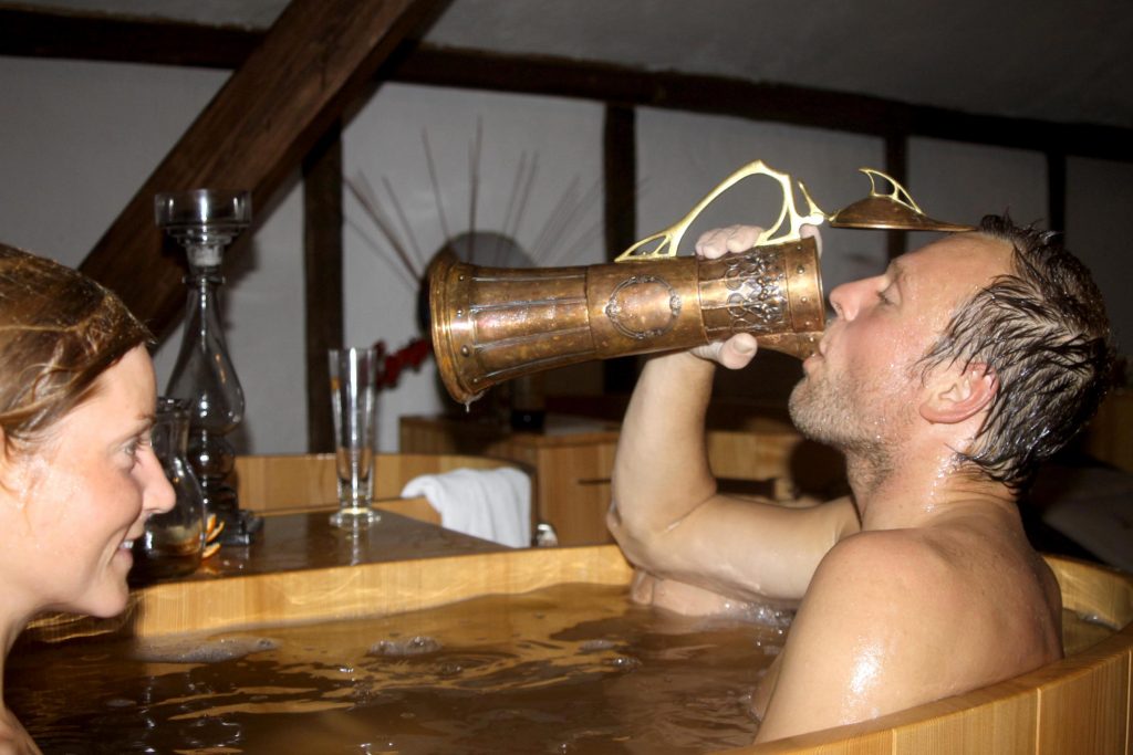 Ein Bierbad wirkt belebend auf die Haut und entspannend auf den Geist. Und...